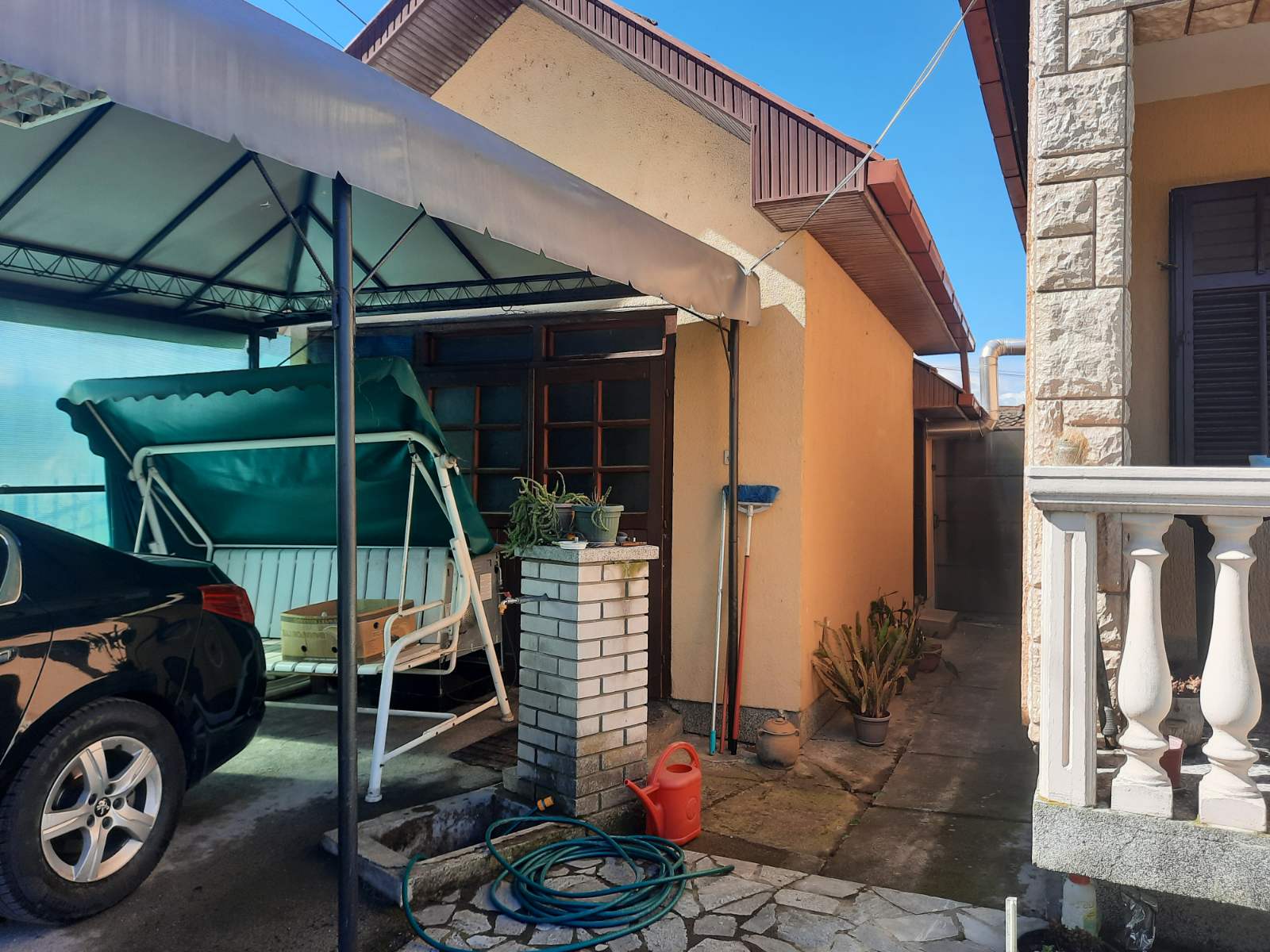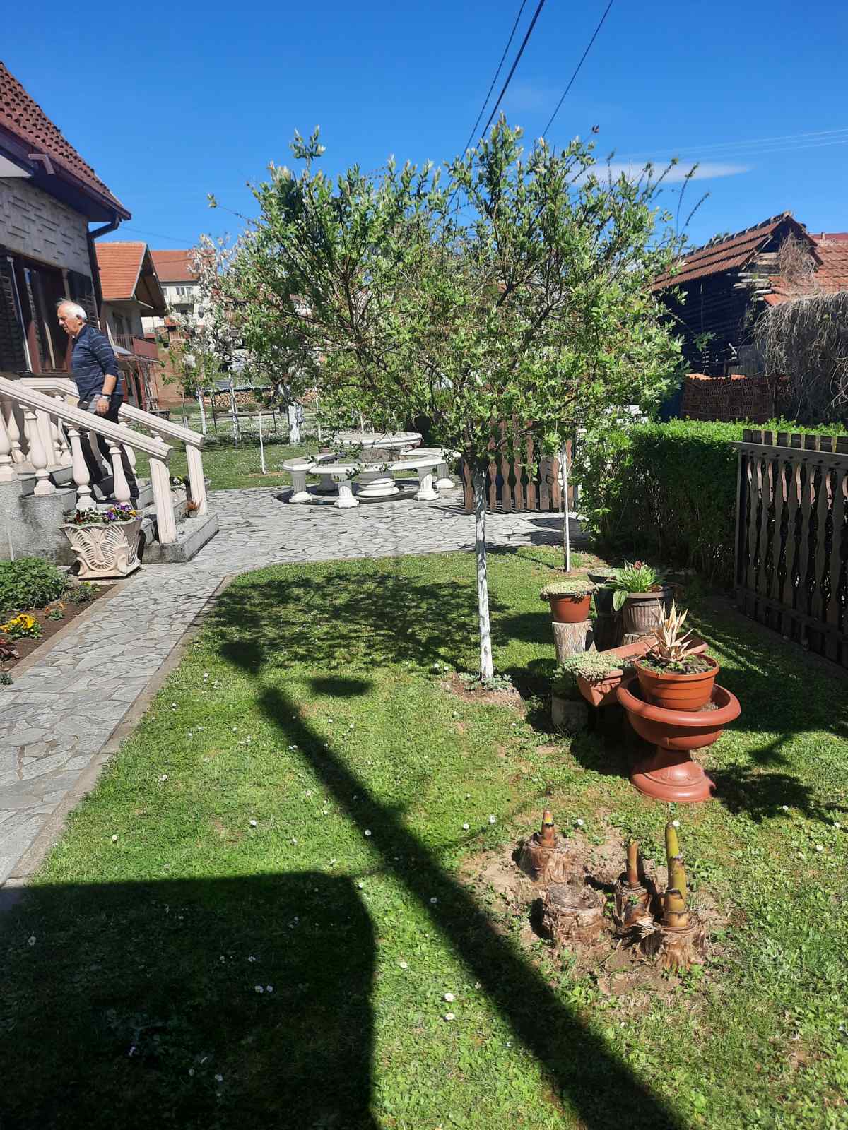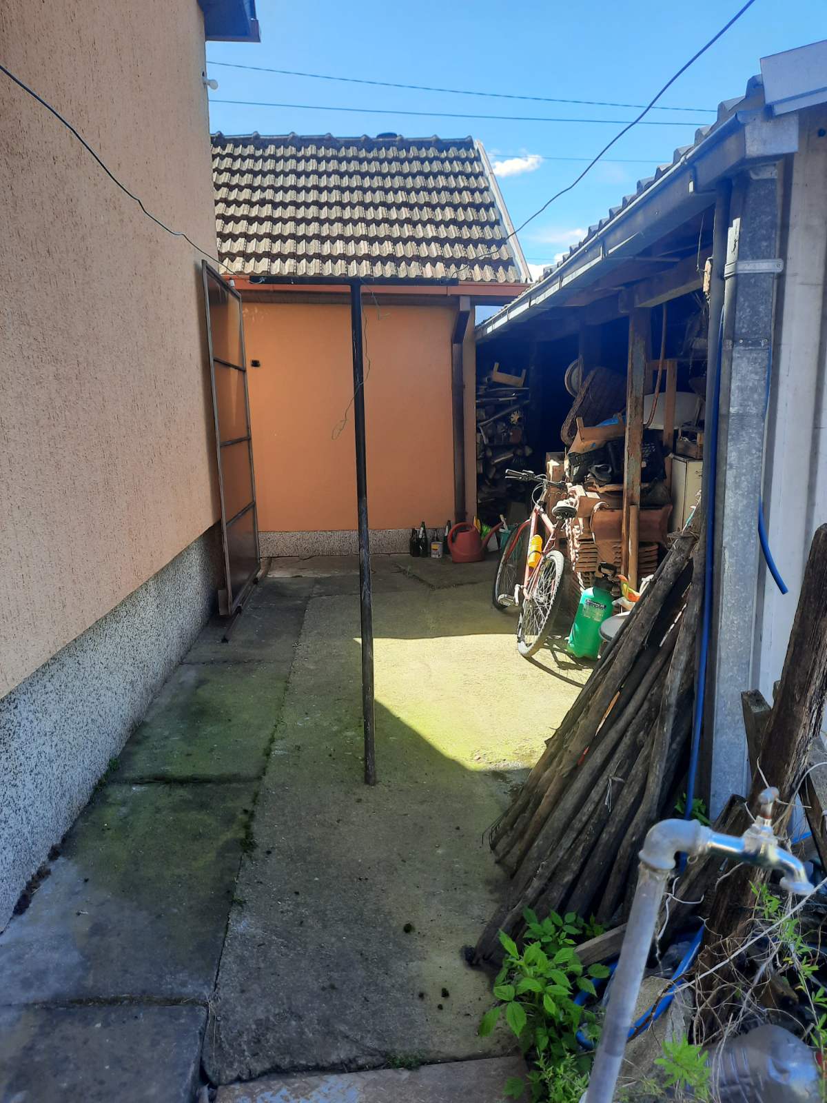 Dvorište i pomoćni objekti:natkriveno parking mesto,letnja kuhinja i kotlarnica -zajedno 40 kvadrata.Kliznim vratima u drugom delu odvojen drvljenik,ostavinski prostor,plastenik.Prelepo uredjeno i negovano dvorište.Gradska voda,priključenje na kanalizaciju u toku,do tada septička jama,agregat u slučaju nestanka struje.Jednom rečju:domaćinska kuća…