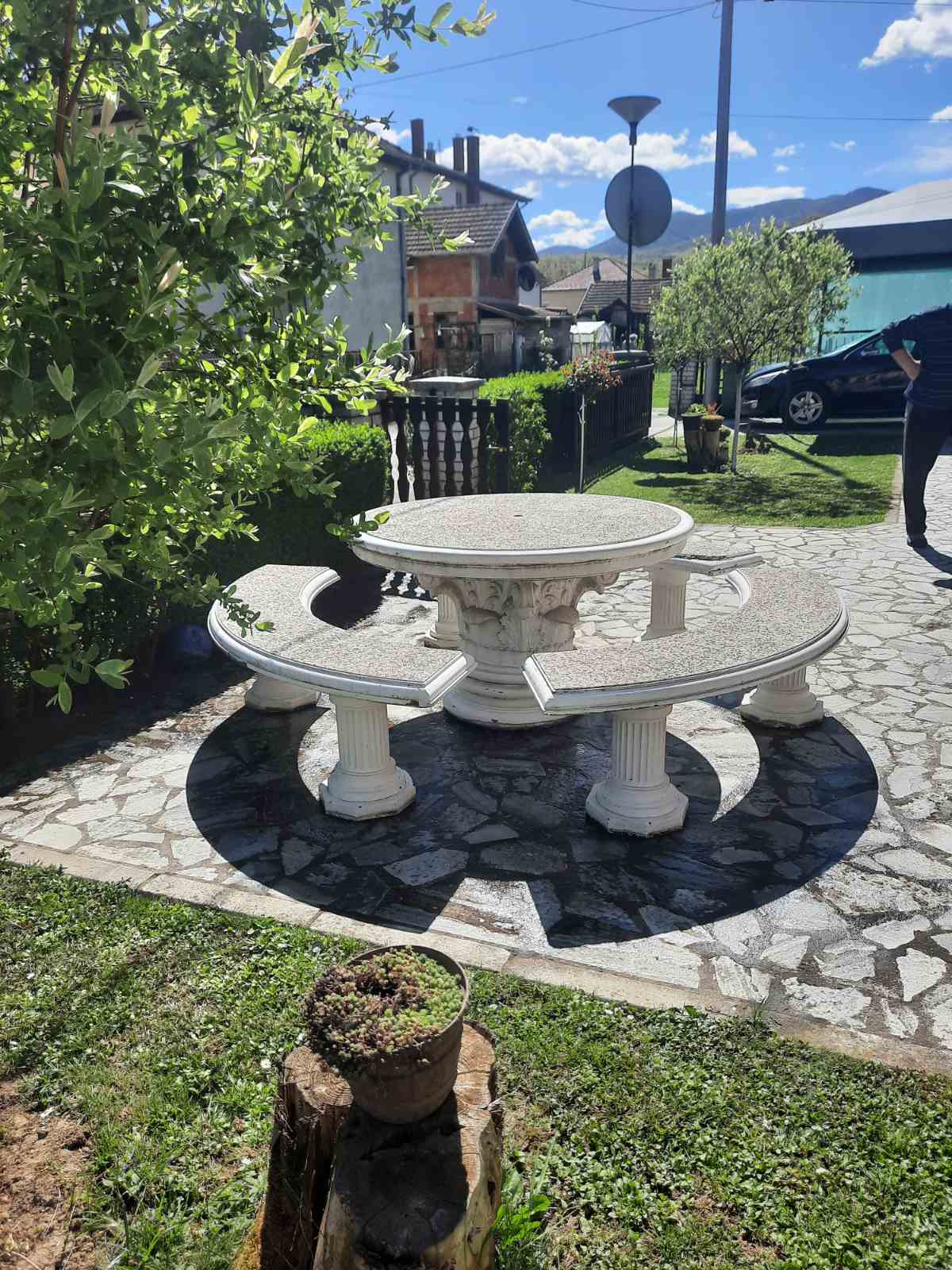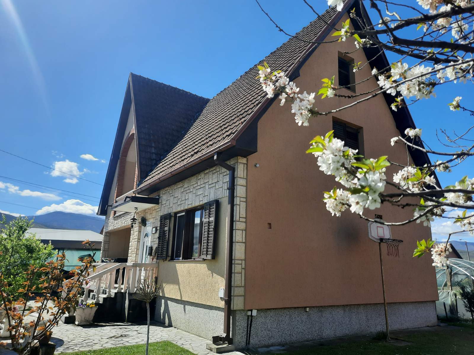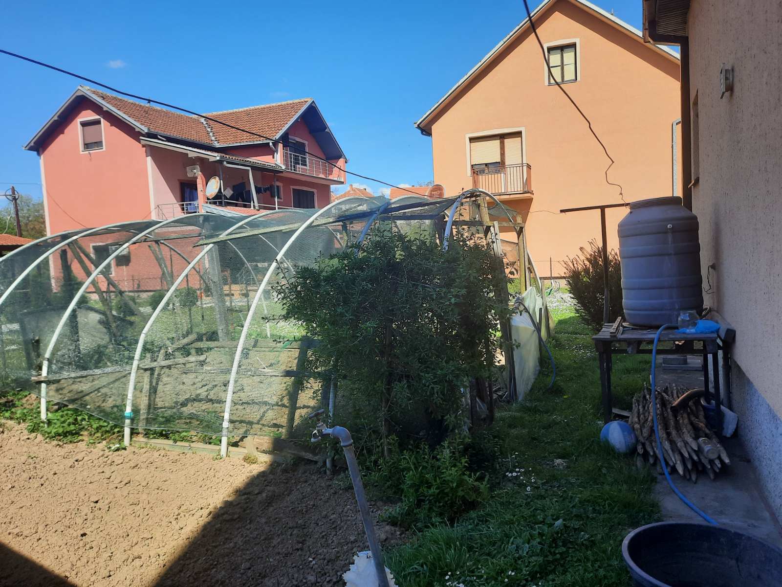 Dvorište i pomoćni objekti:natkriveno parking mesto,letnja kuhinja i kotlarnica -zajedno 40 kvadrata.Kliznim vratima u drugom delu odvojen drvljenik,ostavinski prostor,plastenik.Prelepo uredjeno i negovano dvorište.Gradska voda,priključenje na kanalizaciju u toku,do tada septička jama,agregat u slučaju nestanka struje.Jednom rečju:domaćinska kuća…