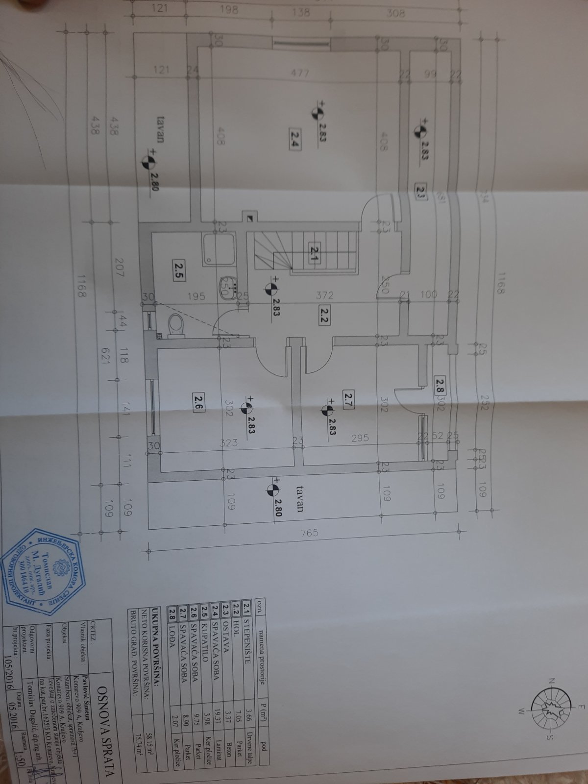 Sprat:tri spavaće sobe,kupatilo,terasa,izlaz na tavan.