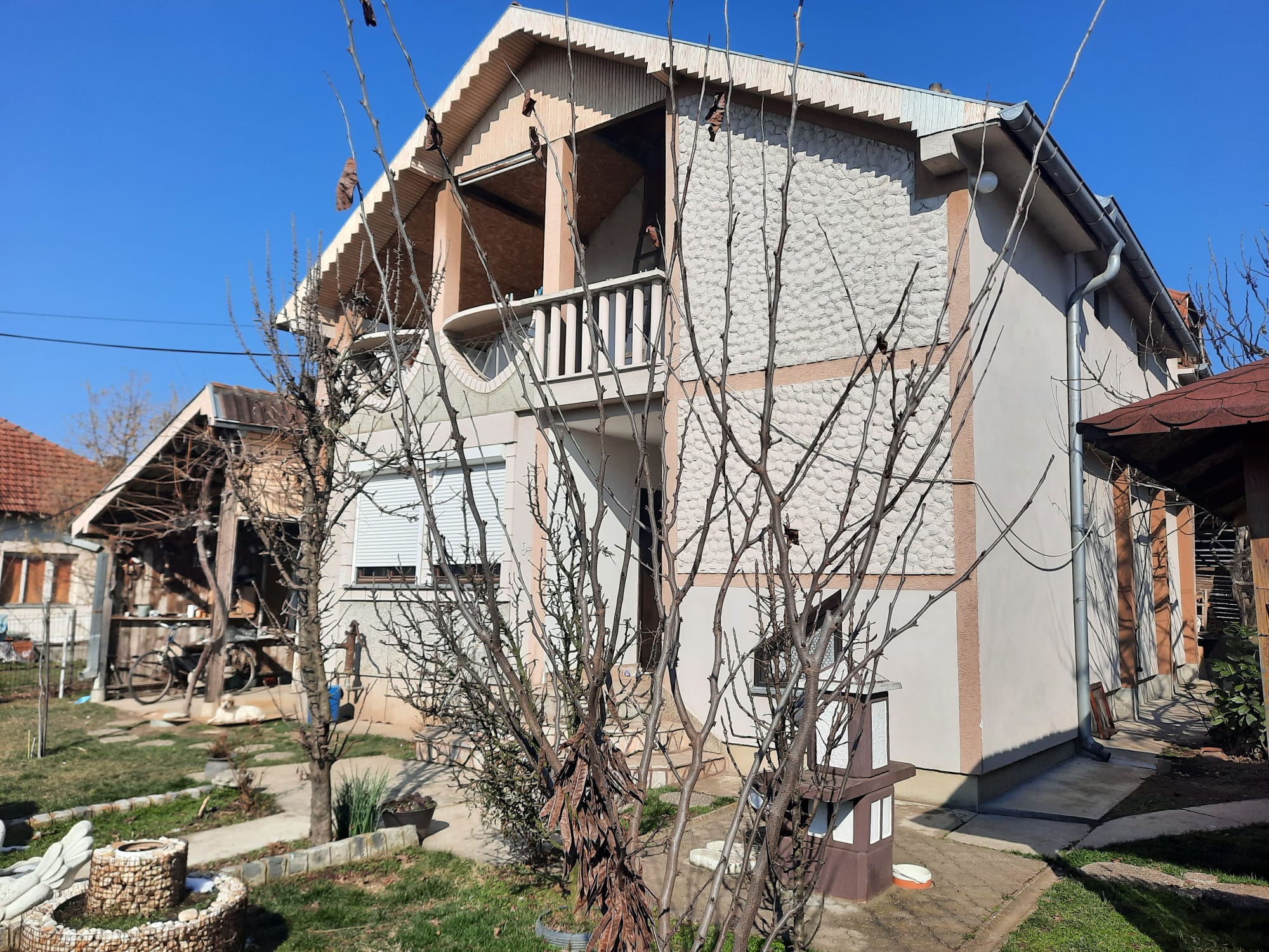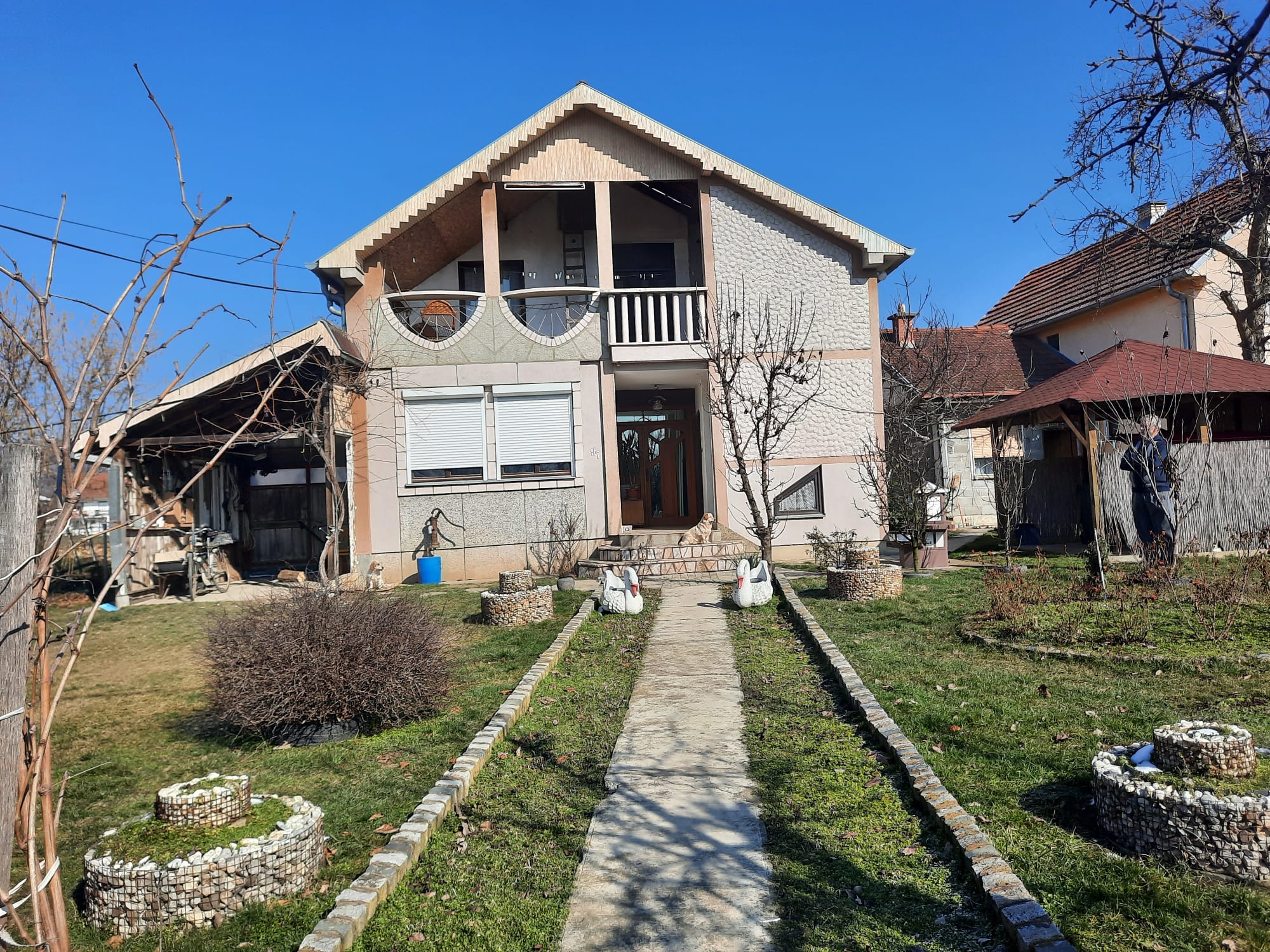 Dvospratna kuća u Ratini površine 160 kvadrata bez većih ulaganja.U pitanju su praktično dve odvojene stambene jedinice.Podignut je letnjikovac,izidana letnja kuhinja i ostava posebno.Ima garažu i drvljenik.Gradska i bunarska voda.Sprovedena je kanalizacija,trofazna struja.Pri ulazu u kuću ostava je sa desne i jedna mala sobica sa leve strane.Dalje:kupatilo,spavaća soba,prostran dnevni boravak,kuhinja sa trpezarijom.Na spratu je prostrana terasa,dnevni boravak sa kuhinjom,kupatilo,dve spavaće sobe od kojih jedna nije dovršena.Prodaje se radi preseljenja kod ćerke u drugi grad.Legalizacija po pronalaženju kupca na teret prodavca.Cena 85000€ Agencijska provizija 2%