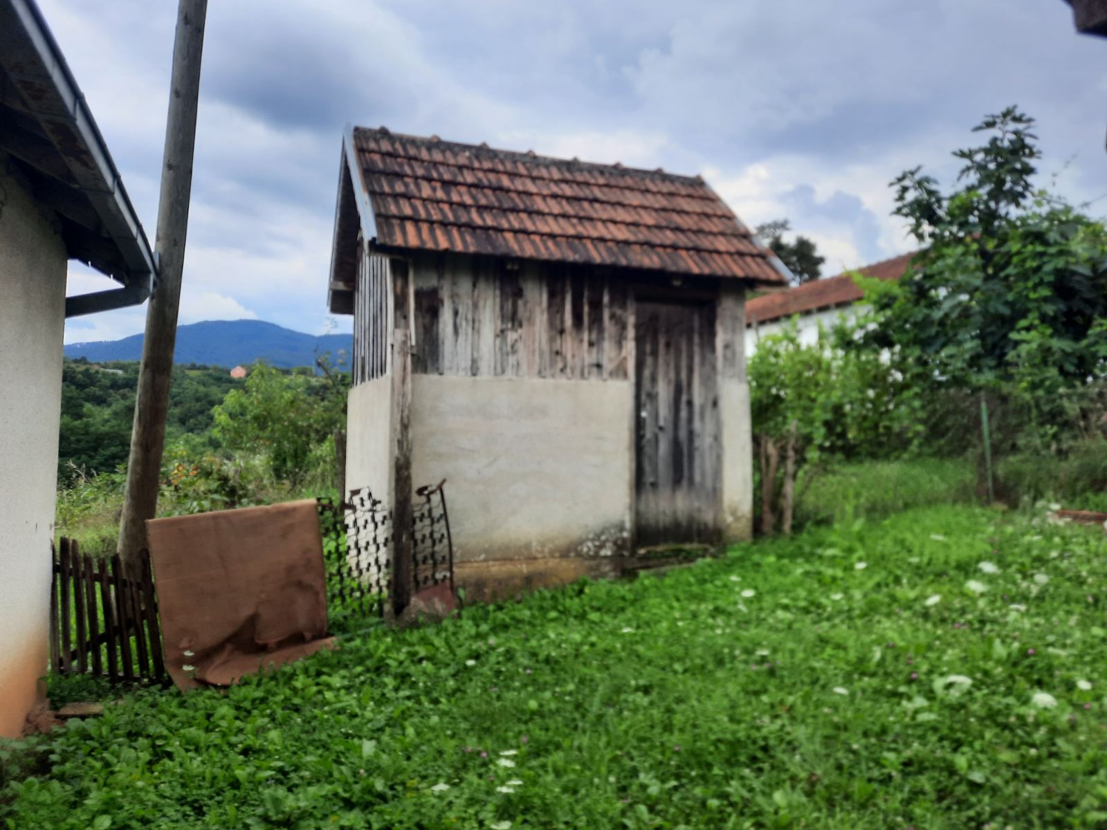 Ima pomoçne objekte:letnju kujnu,garažu,štalu,svinjac,kokošinjac itd